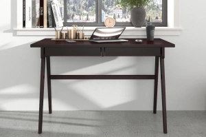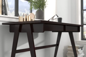 Drewniane biurko Visby EDDA jest nie tylko meblem, ale także małym dziełem sztuki, które wprawia w zachwyt swoim designem i funkcjonalnością. Wykonane ze starannie wyselekcjonowanego drewna bukowego, dumnie prezentuje swoją smukłą formę wspartą na charakterystycznych ukośnych nogach, inspirowanych skandynawskim stylem. Poprzeczne łączenie nóg, to nie tylko estetyczny akcent, ale przede wszystkim element wzmacniający konstrukcję a także zapewniający stabilność i pewność użytkowania.