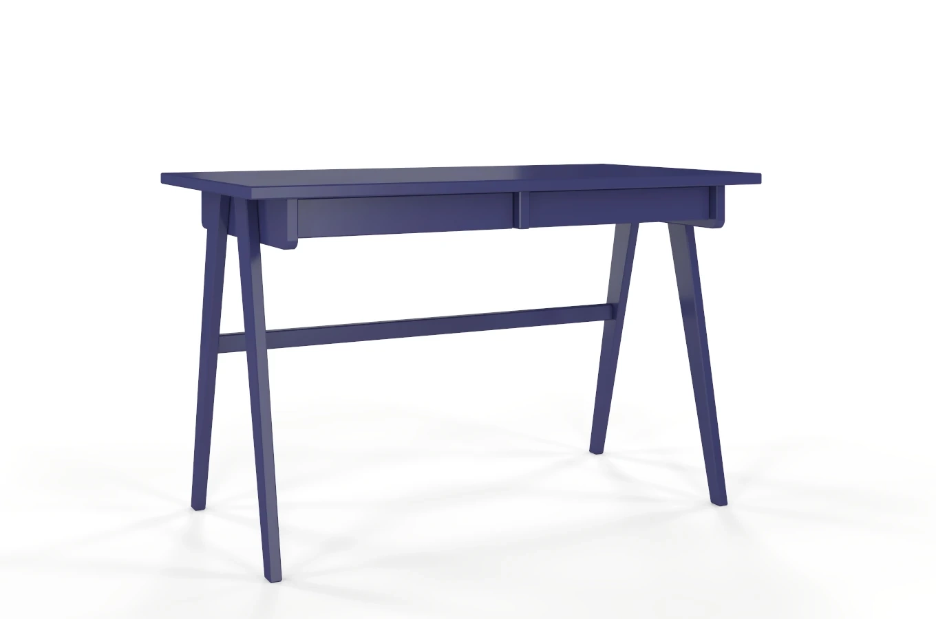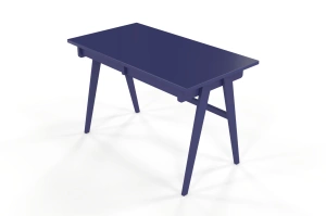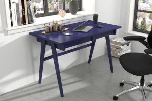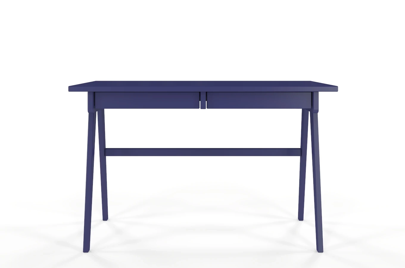 Pod blatem biurka kryją się dwie niskie szuflady, w których można schować niezbędne drobiazgi i akcesoria, utrzymując tym samym porządek i harmonię w miejscu pracy. Długi blat stanowi dodatkową przestrzeń na podręczniki i zeszyty, a także laptopa czy lampkę.