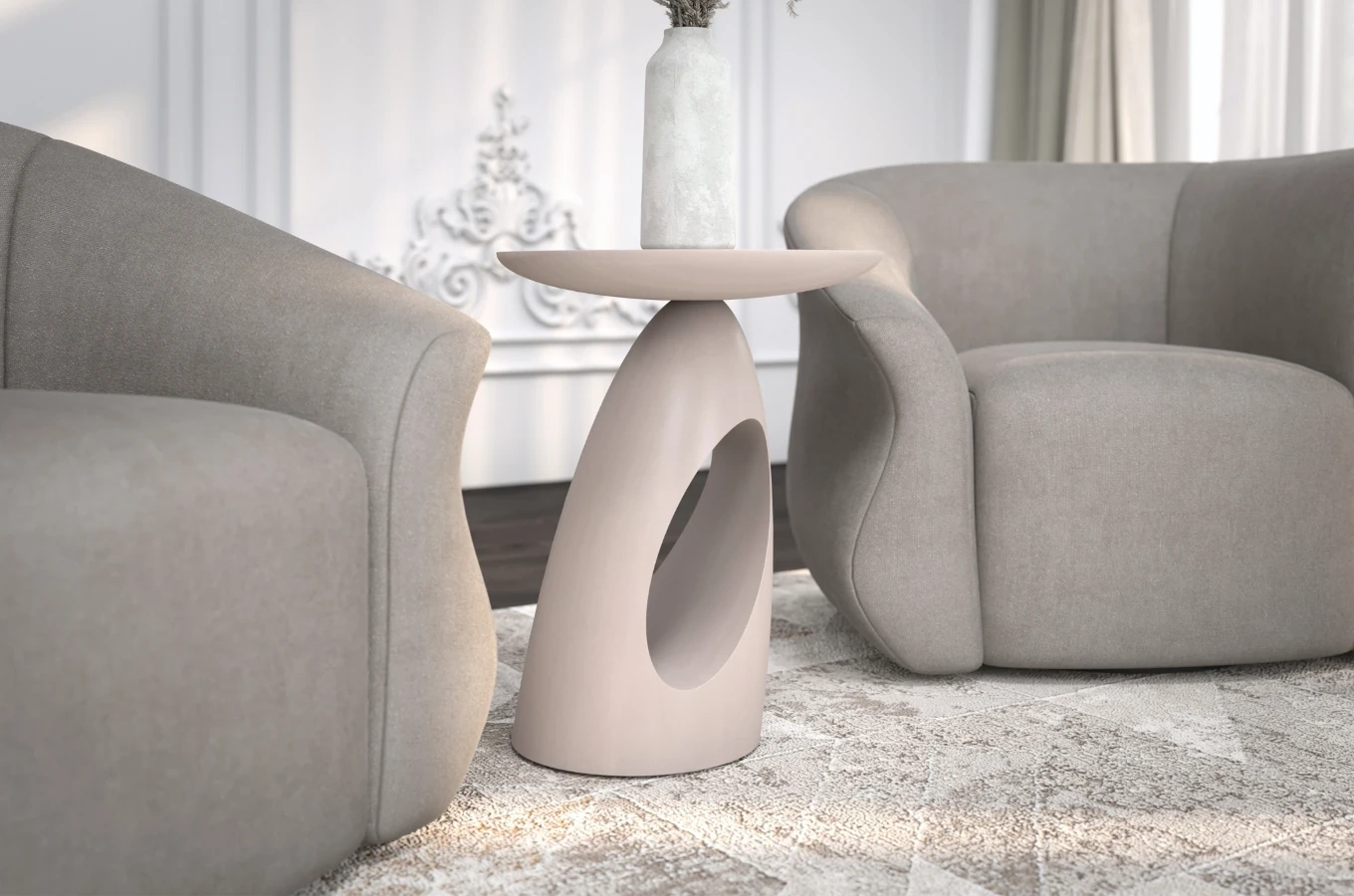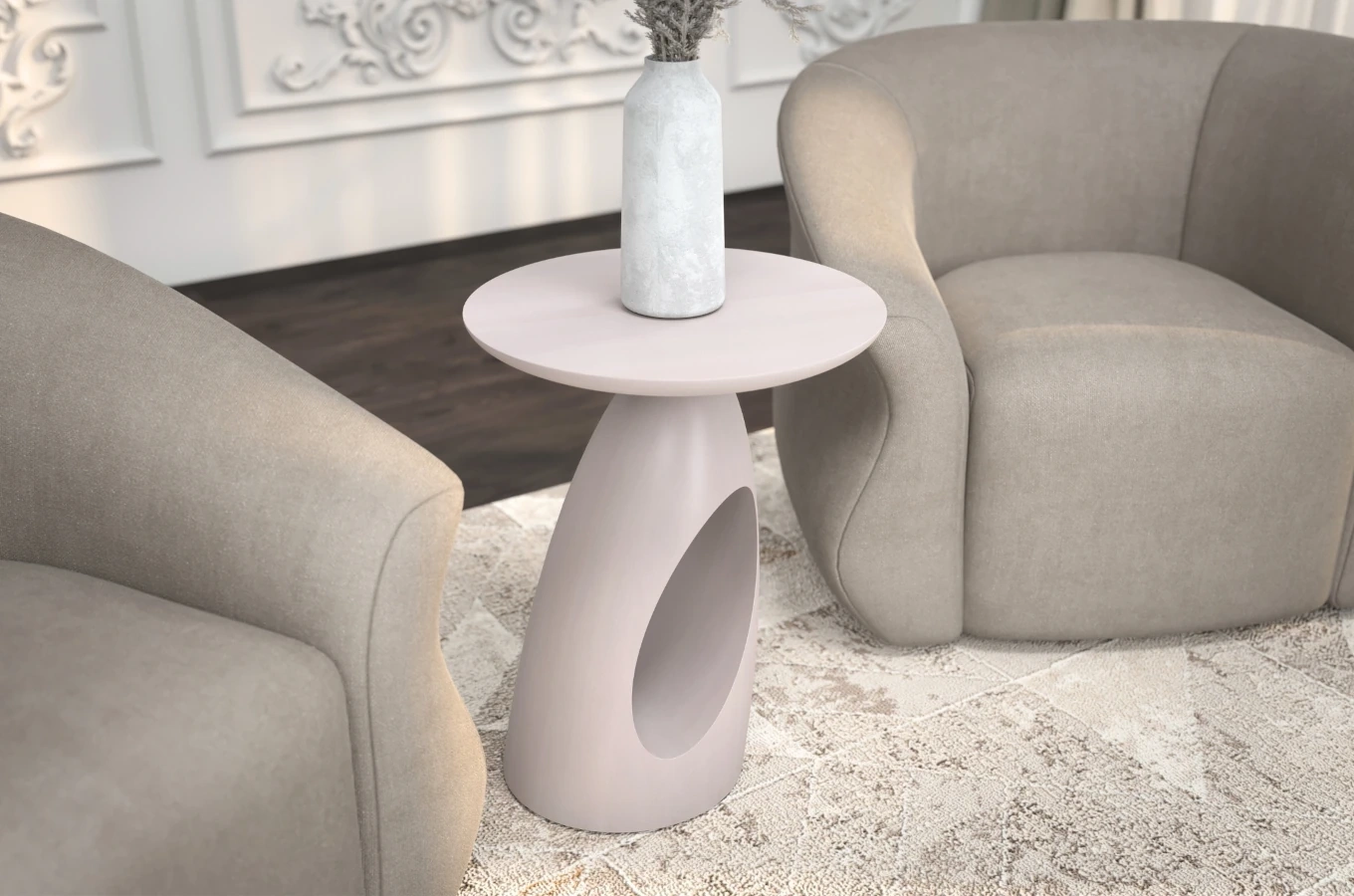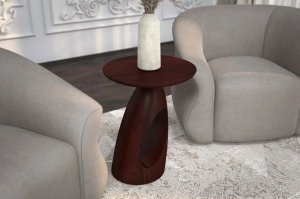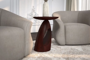 Stolik drewniany ISLAND to wyjątkowe połączenie minimalistycznej elegancji i organicznych kształtów, inspirowane stylem japandi. Jego rzeźbiarska forma, podkreślona asymetryczną podstawą z subtelnym, owalnym otworem, nadaje mu lekkości i nowoczesnego charakteru. Dzięki kompaktowym wymiarom (32 x 40 cm) doskonale wpisuje się w niewielkie przestrzenie, zapewniając funkcjonalną powierzchnię na filiżankę kawy, ulubioną książkę czy stylowe dekoracje. Wszechstronność modelu sprawia, że z powodzeniem może pełnić rolę stolika bocznego, kawowego, a nawet designerskiej szafki nocnej.
