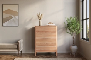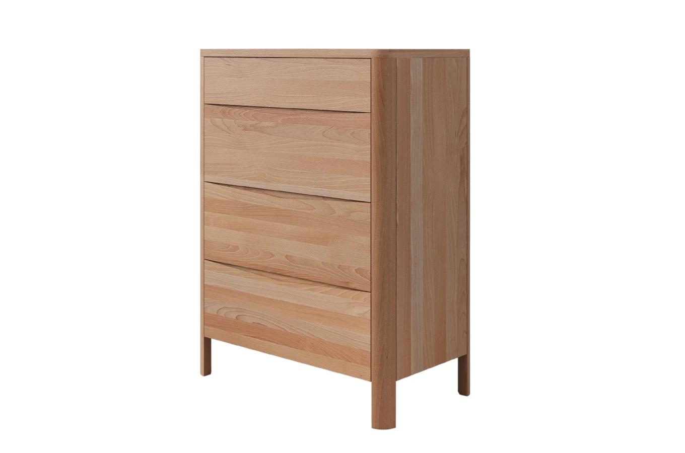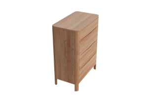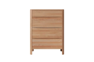 • Komoda z drewna bukowego, która łączy nowoczesny design z funkcjonalnością. Cztery szuflady z cichym domykiem i eleganckie frezowanie tworzą stylowy, praktyczny mebel na lata.