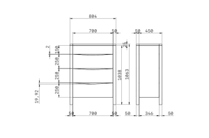 • Plecy i dno szuflad: biała płyta HDF (standardowa płyta wykorzystywana do wykonywania dna szuflad w meblach - wykorzystywana jest ona także do produkcji paneli podłogowych)