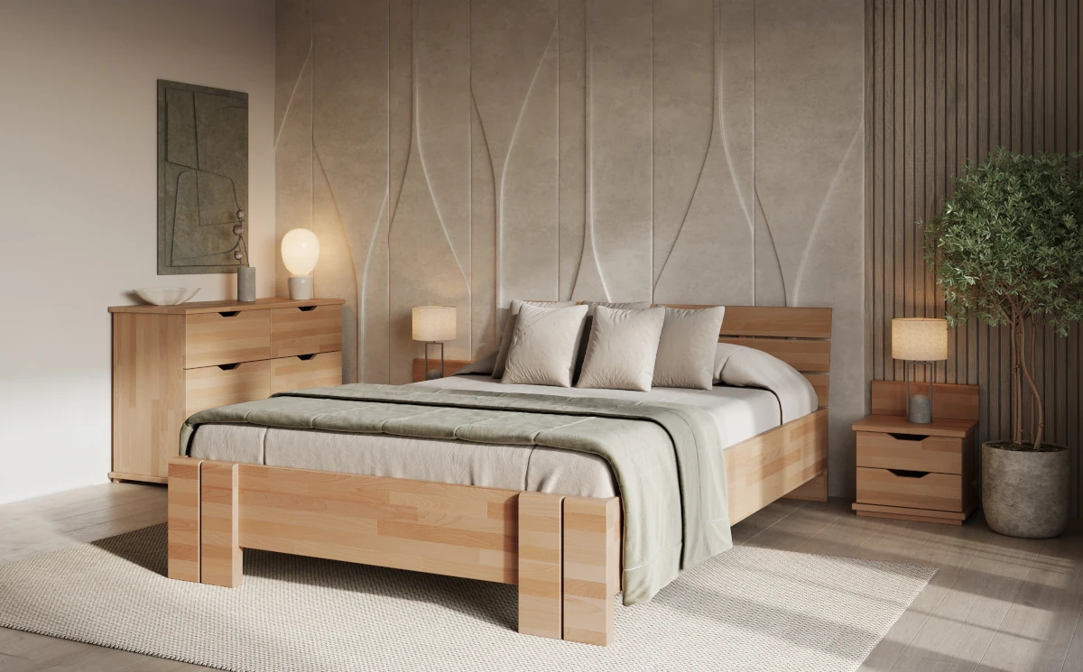 Oryginalny i praktyczny mebel: Dwuszufladowa szafka z ciekawie wyciętymi uchwytami i wyższym tyłem bardzo dobrze prezentuje się z pozostałymi meblami z kolekcji Arhus. Uzupełnienie wystroju każdej sypialni: Szafka nocna jest świetnym dopełnieniem każdego pomieszczenia, w szczególności sypialni. Dwie szuflady, wysokość mebla sprawiają, że ten mebel będzie idealny dla osób lubiących komfortowy dostęp do podręcznych rzeczy.