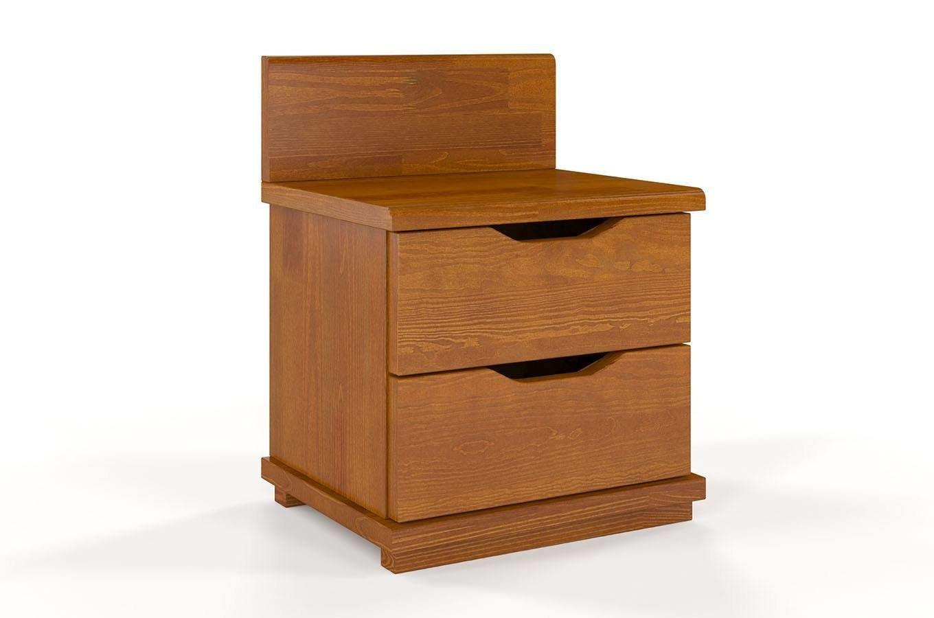 Oryginalny i praktyczny mebel: Dwuszufladowa szafka z ciekawie wyciętymi uchwytami i wyższym tyłem bardzo dobrze prezentuje się z pozostałymi meblami z kolekcji Arhus. Uzupełnienie wystroju każdej sypialni: Szafka nocna jest świetnym dopełnieniem każdego pomieszczenia, w szczególności sypialni. Dwie szuflady, wysokość mebla sprawiają, że ten mebel będzie idealny dla osób lubiących komfortowy dostęp do podręcznych rzeczy.