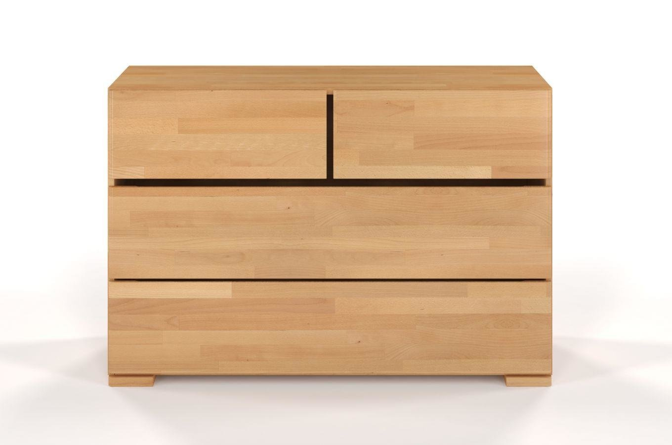 • Drewniana, bukowa komoda z czterema szufladami różnej wielkości. Jej nowoczesny i uniwersalny charakter podkreśla gładki front, prosta forma i brak uchwytów. Dzięki temu będzie doskonałym uzupełnieniem każdej sypialni.