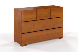 Komoda Sandemo jest idealnym dodatkiem do łóżka z linii Visby Sandemo. Posłuży do przechowywania odzieży, bielizny, pościeli, ale może być wykorzystywana do innych celów. Jest prosta, subtelna i zarazem praktyczna, a jej stylistyka oparta na minimalizmie dodaje powagi i elegancji.