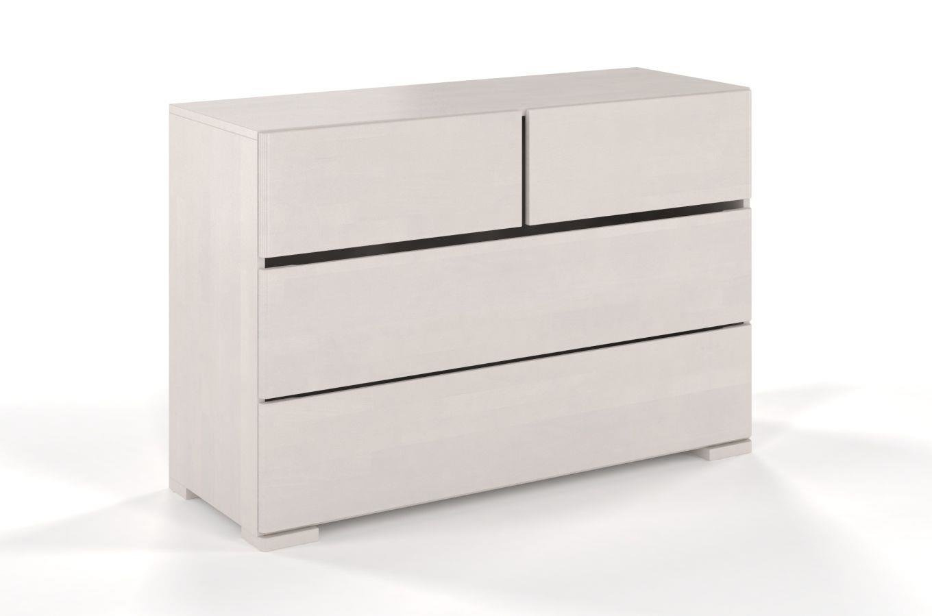 Prosta, czteroszufladowa komoda o gładkim froncie z kolekcji Sandemo. Meble z tej serii to jedne z najlepiej sprzedających się wyrobów marki Visby. Masywny mebel dzięki prostemu designowi wydaje się być lekki i stabilny. Visby Sandemo został zaprojektowany z myślą o nowoczesnych, europejskich sypialniach. Doskonale prezentuje się w dużych pomieszczeniach, jak i małych, przytulnych pokojach.