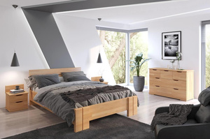 Drewniane, bukowe łóżko do sypialni Visby ARHUS High&BC to ceniony i stylowy mebel, który odmieni każdą sypialnię, a ponadto zapewni wygodny i doskonały wypoczynek. Stabilność i solidne wykonanie dodatkowo podkreślają jego atuty. Dzięki podwyższonej wysokości – tym samym wyższemu ułożeniu materaca niż w standardowych łóżkach (prawie 50 cm) - łóżko ARHUS High&BC jest meblem, z którego wstawania jest zdecydowanie łatwiejsze. Zwiększona wysokość jest również niezastąpionym sprzymierzeńcem w trosce o czystość - w strefę snu nie dostają się roztocza i zanieczyszczenia w takiej ilości, jak w przypadku niższych mebli.